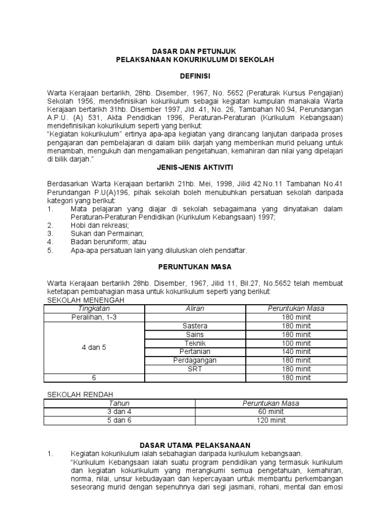 Semua Tingkatan Semua Aliran 180 minit Tahun 3 dan 4 - 60. Perancangan Strategik Kokurikulum d. Up to 3 cash back DASAR DAN PERLAKSANAAN KOKURIKULUM DI SEKOLAH-SEKOLAH.